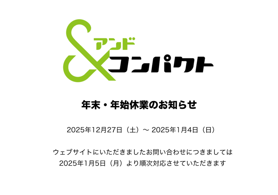 【年末・年始休業】 2025年12月27日(土)〜 2025年1月4日(日) ◎ ウェブサイトにいただきましたお問い合わせにつきましては 2025年1月5日(月)より順次対応させていただきます。