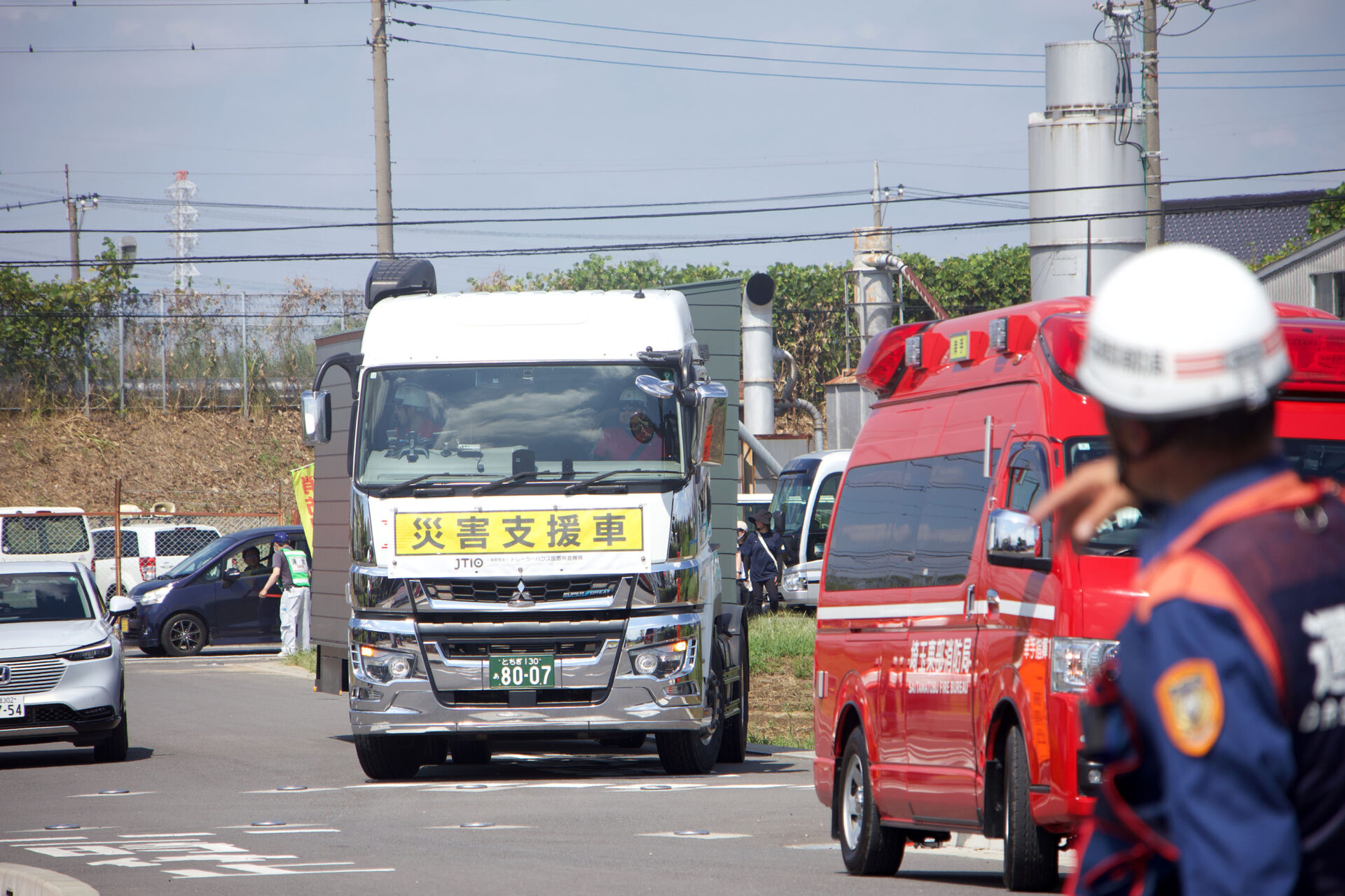 2025年9月7日(日)、埼玉県幸手市内にて「第46回 九都県市合同防災訓練」が開催されました。本イベントにおいて、トレーラーハウスは初めての訓練参加となりました。被災地における「活動支援車」としてのトレーラーハウスを輸送~設置し、その様子が当日Youtubeでライブ配信されました。また、展示ブースにて新製品となる「トイレアンドコンパクト」を出展いたしました。